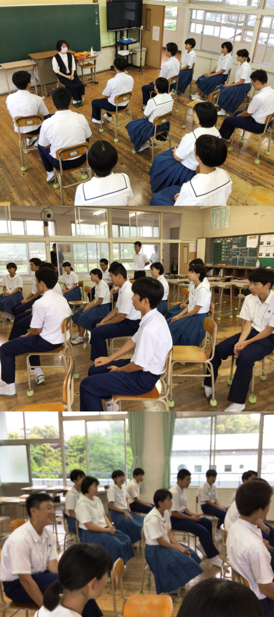 6月2日(金)の朝は「読み聞かせ」でした。本年度の第3回目です。月1回のこの時間を生徒たちはとても楽しみにしています。梅雨入りしたばかりですので雨にちなんだお話や、懐かしい紙芝居を使ってのお話がありました。どの教室も、生徒たちが食い入るように本を見つめ、お話に聞き入っていました。地域の先生方、今週もありがとうございました。