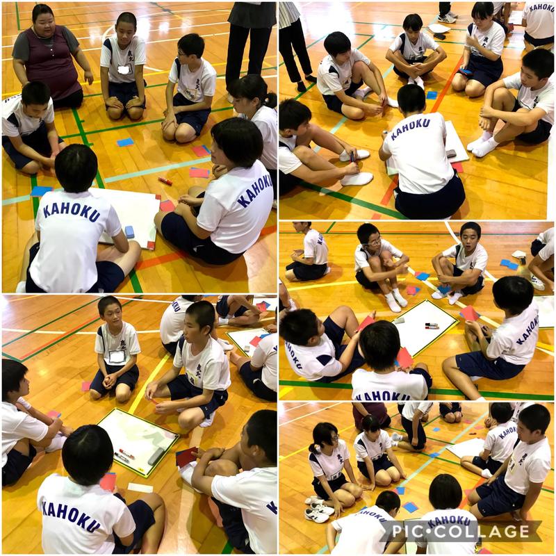 9月20日(金)15時40分より、ランチルームにて、鹿北中学校ネット(SNS)利用8か条について、確認し徹底するための集会を行いました。