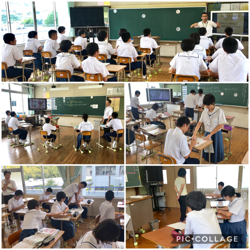 9月20日(金)9時、山鹿中学校の今本先生が、イスにつけるテニスボールを取りに来られました。今本先生は今年の3月まで鹿北中におられたので、生徒も、先生もみんな懐かしいというよりも、そこにいて当然といった感じでまったく違和感がありませんでした。