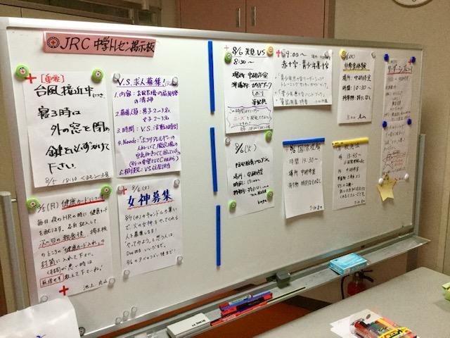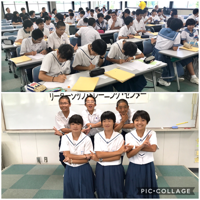 教科連絡は、教科係がちゃんと先生から聞いたことを、小さい黒板に書いて報告していました。伝え方、聞き方も良かったです。そして、持ち物や宿題は、板書されているものを自分でメモすることになっています。夏休みに代表生徒が参加したJOCトレセン方式で、自主性重視です。