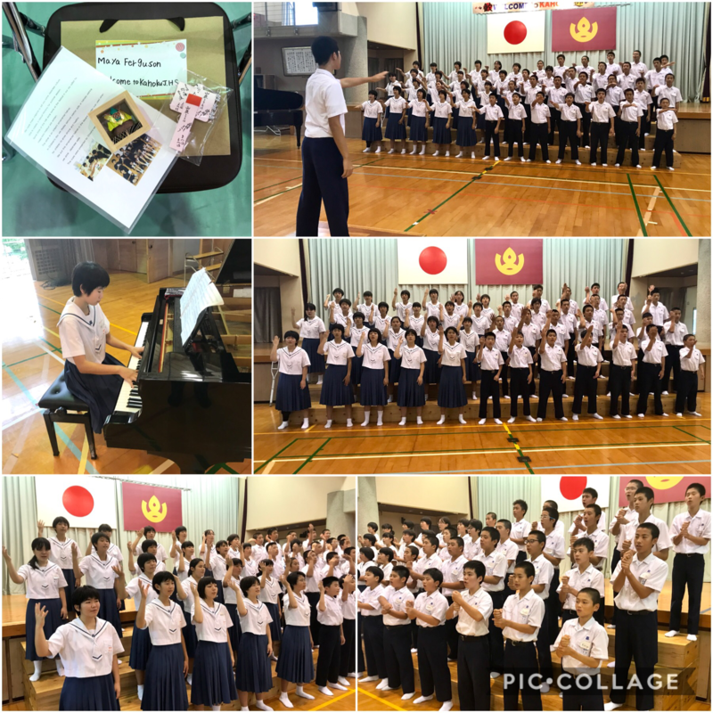 9月に入って、鹿北中恒例のパートごとに歌の練習が始まりました。給食準備時間を利用して、パートリーダーを中心に校舎内に歌声が響いています。