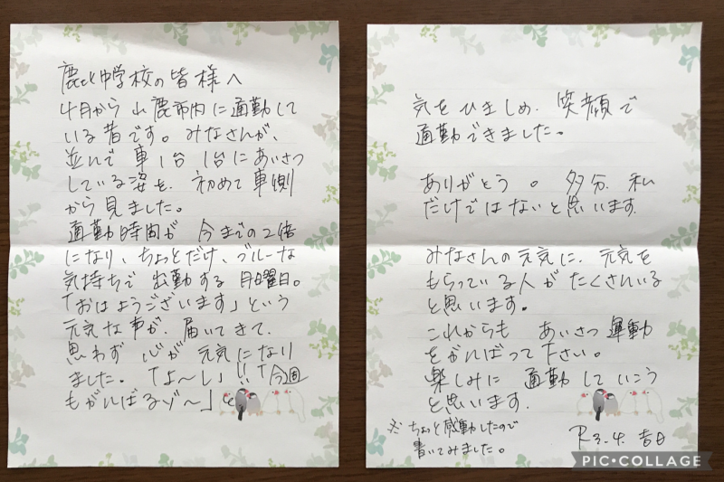 みんな何だろうと思っていると、6名の1年男子生徒が、落ちていたお財布を拾って駐在所に届けてくれたことが伝えられました。