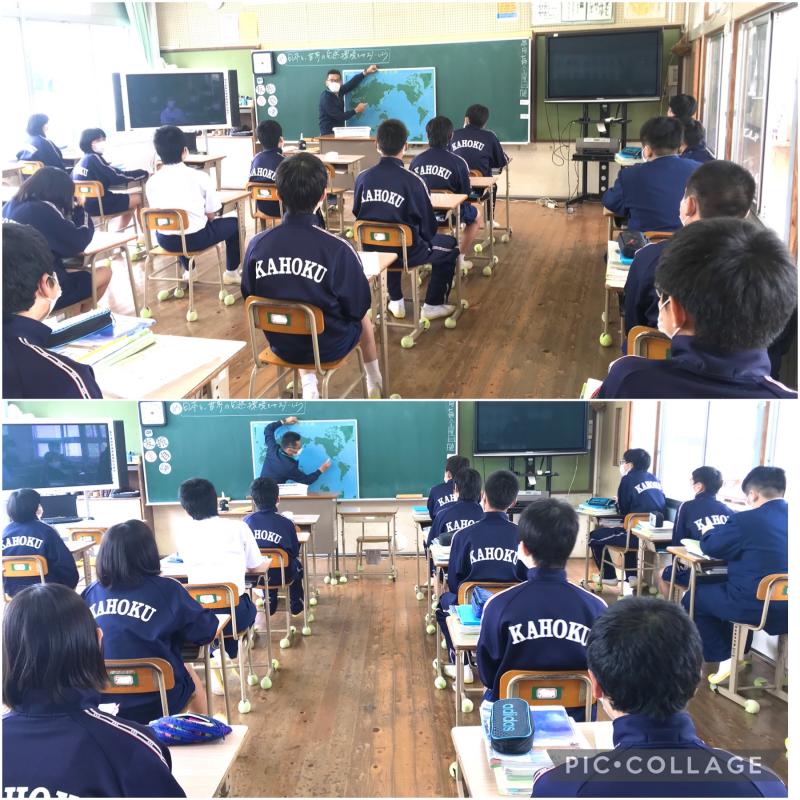 2年生は社会の授業。テンポよく、活気あふれる授業が行われていました。新型コロナウイルス感染対策のため、いつものように校舎中に響く声は出せませんが、それでも、先生のエネルギーで生徒のモチベーションも上がっていました。