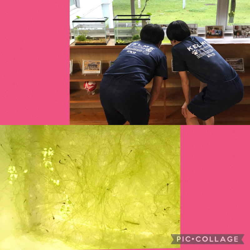 5月18日(火)朝から、事務室前のめだかの水槽を熱心にのぞいている生徒がいます。最近いつも以上に多くの生徒が足を止めて水槽をのぞいています。