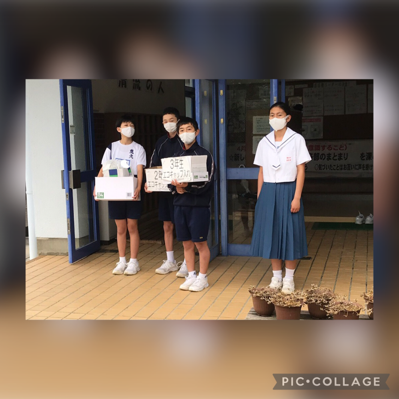 そして、玄関では、健康委員会がペットボトルキャップの回収活動を行っています。
