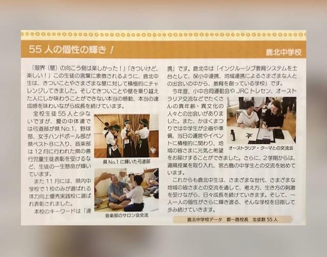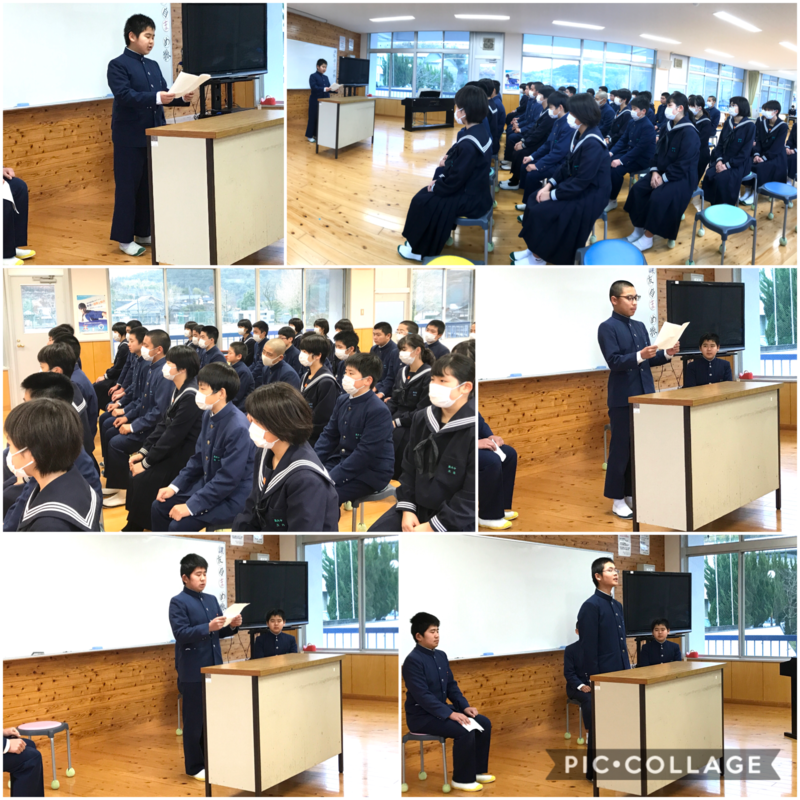 お話のあとの質疑の場面では、鹿北中生が積極的にたくさん質問している姿はとてもすばらしかったです。また、バスの時間が来るまで会場内の清掃のお手伝いもしました。その姿に2年生の成長を実感しました。