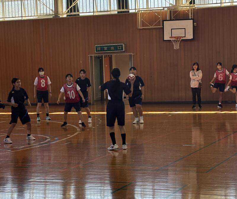 本日4時間目に小学校6年生と中学校1年生の合同体育が行われました。小中学生ともに球技の領域を学習しており、ハンドボールの授業を行っています。今日は学習した成果の中間発表です!ゲームを通して次の授業に生かします。小中学生とも楽しく動き回り、真剣に勝負をしていました。シュートを決めて喜ぶ姿、ゴールキーパーとして痛みを我慢している姿など、とてもよかったです。球技は難しいですが、みんなで協力し、喜び合えるので楽しいですね!