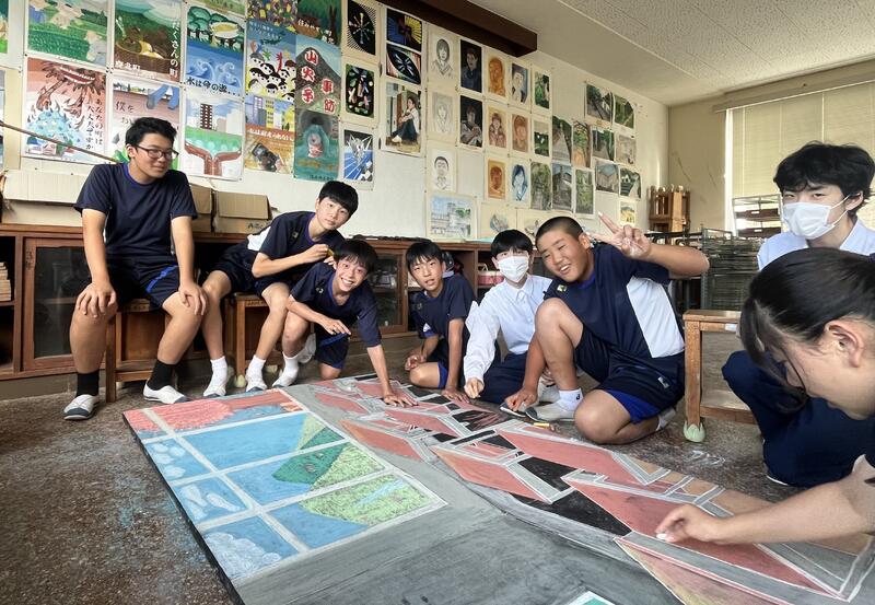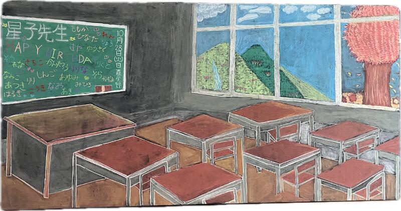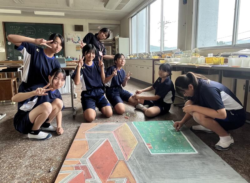 さて、現在、YAMAGA BASE(旧千田小学校)で県内最大級のアートイベントが開催されています。本校の生徒も、学年別に分かれて見学に行きました。例年2年生の有志が黒板アートに挑戦し、今年も展示してあります。お時間のある方は、来場していただければ幸いです。11月3日(月)までの開催で入場料がかかります(18歳以上200円です)写真は、黒板アートを完成させた2年生と見学に行った1年生です。芸術の秋を堪能しました。