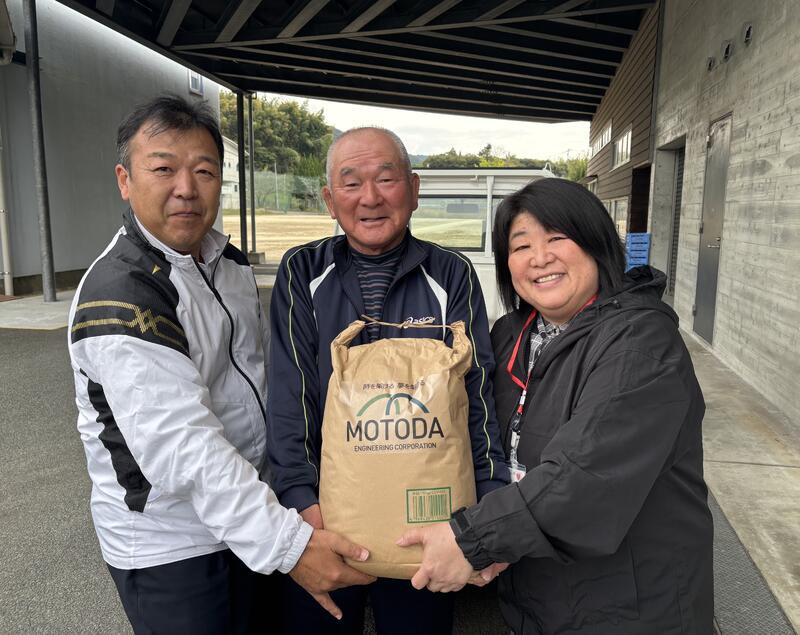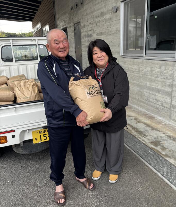 本日、これまでも野菜や馬肉など多くの給食食材を提供いただいています元田様より、新米の提供がありました。鹿北小中学校合わせて130kgほどです。「児童生徒にたくさん食わせなっせ!」といつも通りの笑顔でいただきました。心から感謝です。お帰りの際には「また持ってくるけん!」と言われました。