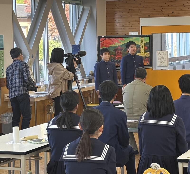 今日は新聞社やテレビカメラも入ったからか・・・少し緊張気味でしたが、しっかりプレゼンテーションができていたことに感心しました。中学生のアイデアを形にしていただいたことに感謝ですね。