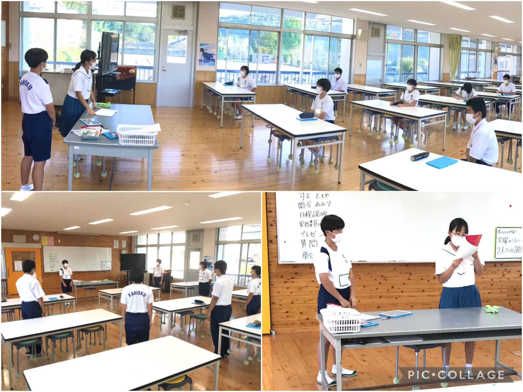 今日の実行委員会は、放課後の職員会議に参加する3年生6名がリハーサルを行い、時間や説明の仕方などを確認しました。