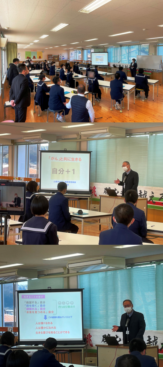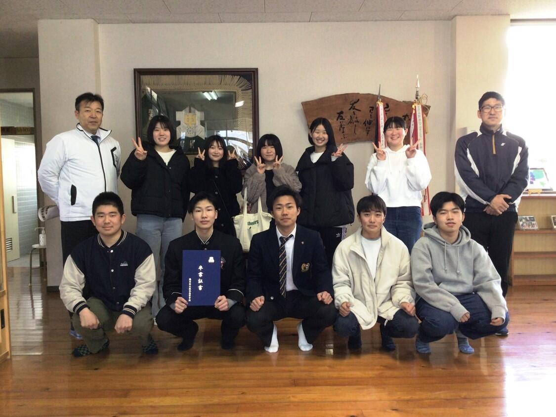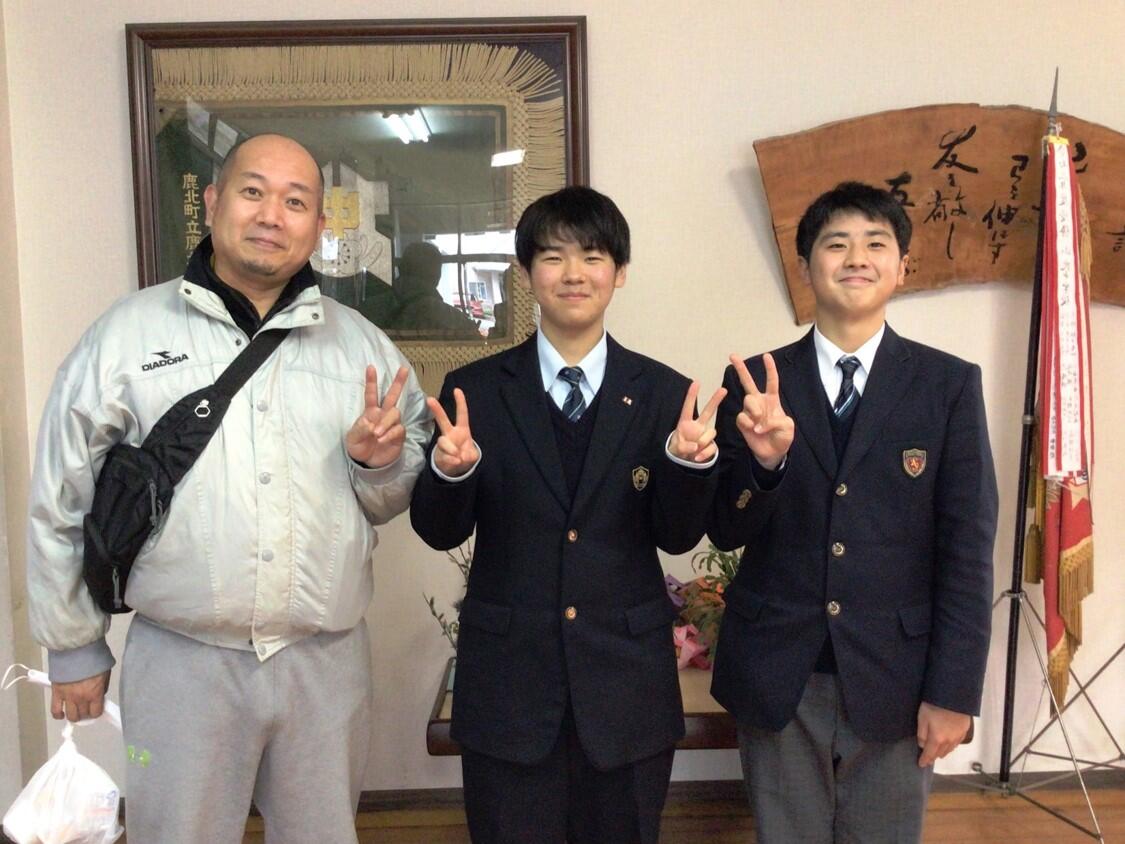 4月10日(月)。多くの高校で入学式が行われました。この3月に本校を卒業した生徒たちも、入学式を終え(明日が入学式の高校もありますが)、それぞれの高校の制服を着て入学の報告に来てくれました。職員室や校長室で高校の様子やこれからのことを話してくれましたが、目を輝かせながら楽しそうに語る姿に明るい未来を感じました。3月の卒業式当日は涙、涙だった元担任のK先生、一番うれしそうに生徒たちを迎えていました。先輩たち、来てくれてありがとう。高校での活躍を期待しています!