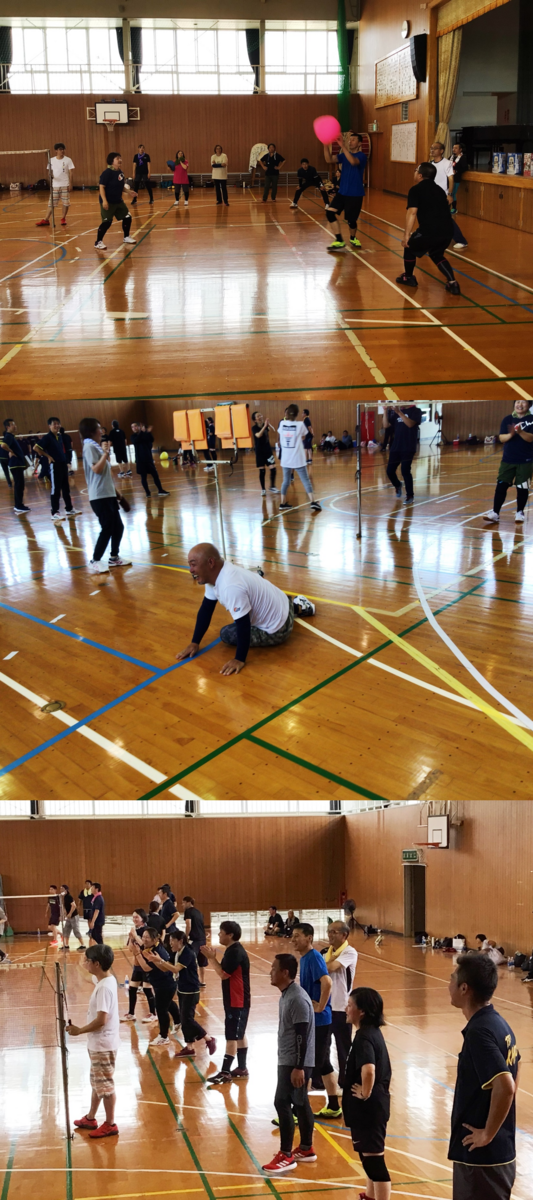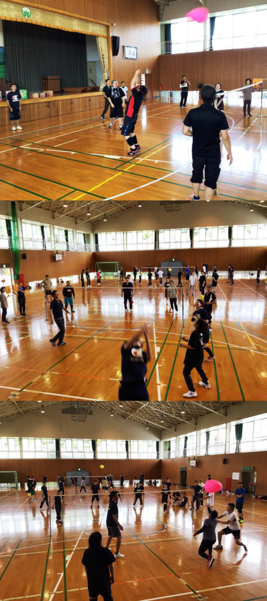 7月30日(日)の午後は鹿北小中学校親睦レクレーション大会でした。鹿北小と鹿北中の職員と保護者が鹿北体育センターに集い、学年別のチームに分かれてフラバールバレーボールを行いました。練習を兼ねたワンラリー後に試合開始。最初はぎこちなかった動きが、競技が進むにつれて長いラリーが続くなどスムーズになり、好プレーあり珍プレーありの楽しい時間となりました。終始笑い声の絶えないすばらしい親睦会でした。保護者の皆様、ありがとうございました!
