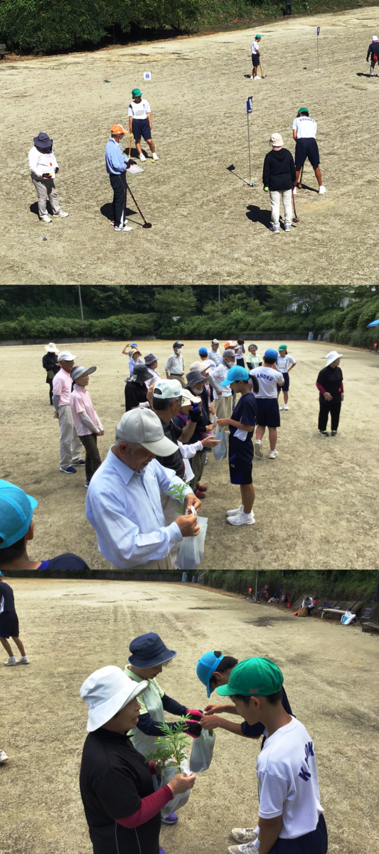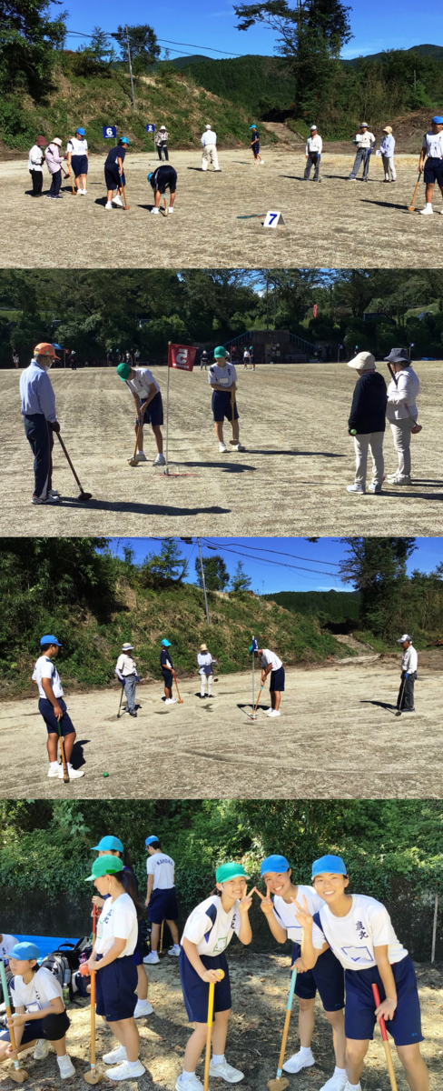 8月2日(水)。中間地区で行われているグラウンドゴルフに生徒が参加させてもらいました。郷土愛や地域との絆を深めるために地区生徒会で企画した取組です。地域の方々に教えていただきながら楽しく競技することができました。「あなた上手ねぇ」「上達するのが早かねぇ」などとたくさん褒めていただきみんな嬉しそうでした。中間地区の皆様、ありがとうございました。