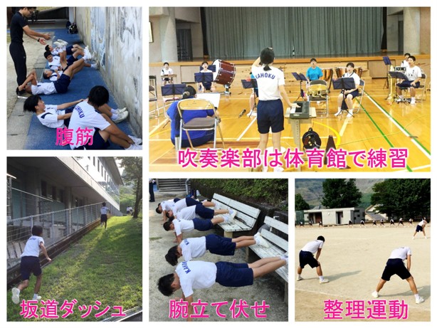 現在、9月に行われる山鹿市中体連陸上競技大会に向けて、全校生徒で練習に取り組んでいます。人数は少ないけど、みんなで声を掛け合い、一生懸命練習しています。まずは、自分との戦いです。自分の記録をどこまで伸ばすことができるか、一人一人自分の壁を越えた姿で当日を迎えることを期待します。
