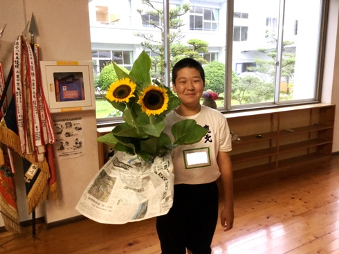 7月20日(木)9時35分より県中体連出場部活動(弓道部、バドミントン部、空手競技)と、吹奏楽部の県吹奏楽部コンクール出場の推戴式(激励会)を行いました。各部の代表生徒が決意を語り、、生徒会長からの激励の言葉、生徒代表から応援旗の授与がありました。どの部も今までの練習の成果をすべて出し切って悔いのないように頑張ってほしいと思います。推戴式後に吹奏楽部がコンクール出場曲の演奏をしてくれました。とても豊かな気持ちになりました。