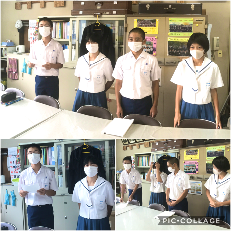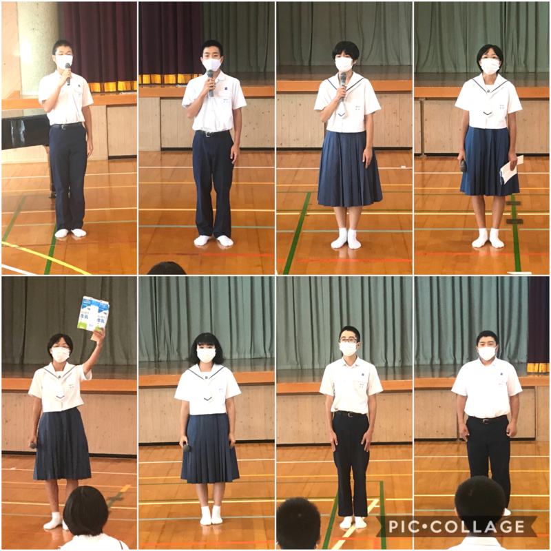 さて、今日の生徒集会は、昨日行われた各委員会活動で話し合われた、10月の目標、活動内容とともに、みんなへのメッセージが委員長から伝えらえました。