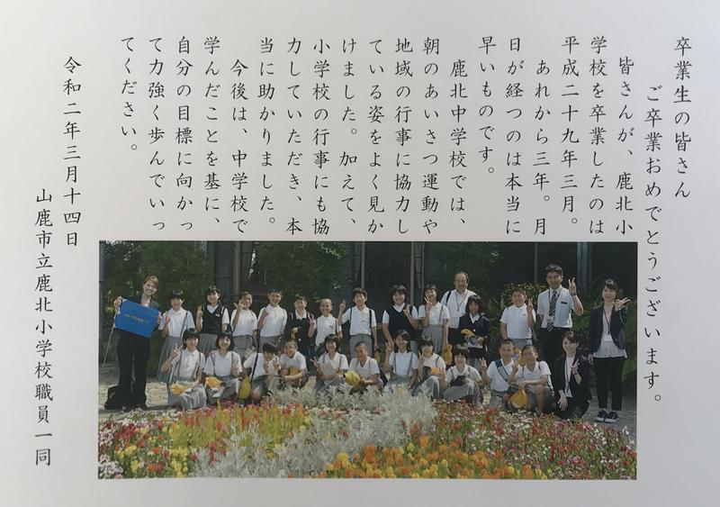 令和元年度、鹿北中にいただきましたたくさんのご厚情に心より感謝申し上げます。そして、令和2年度も、鹿北中を何卒よろしくお願い申し上げます。