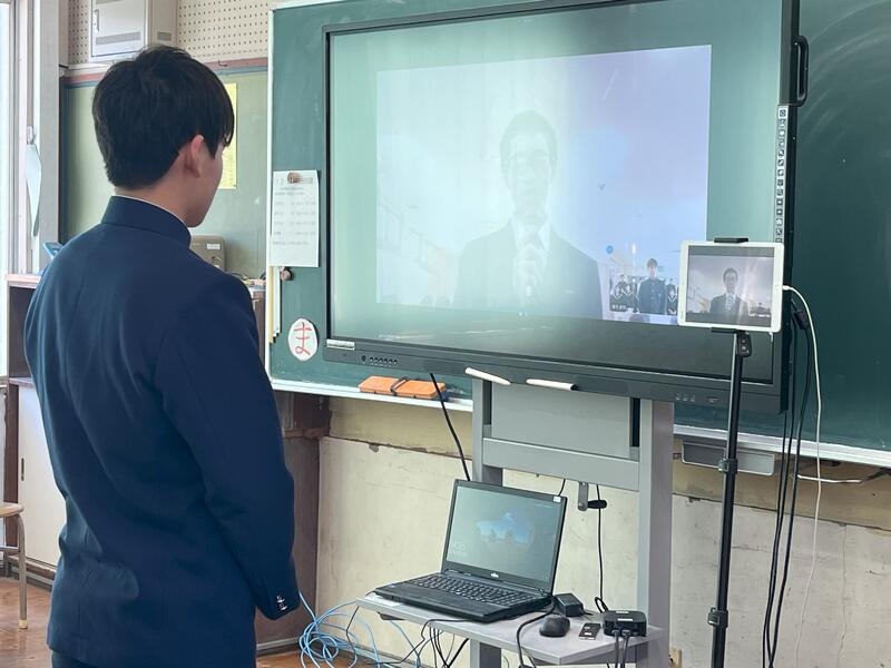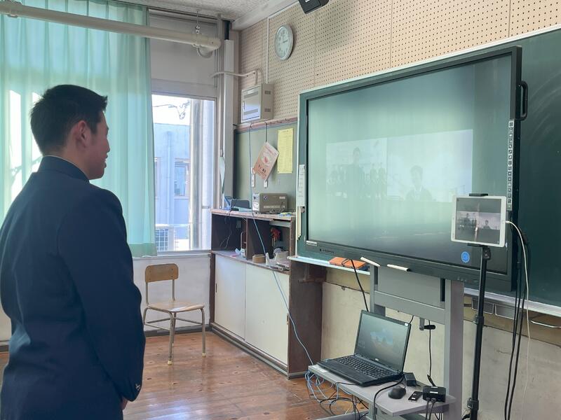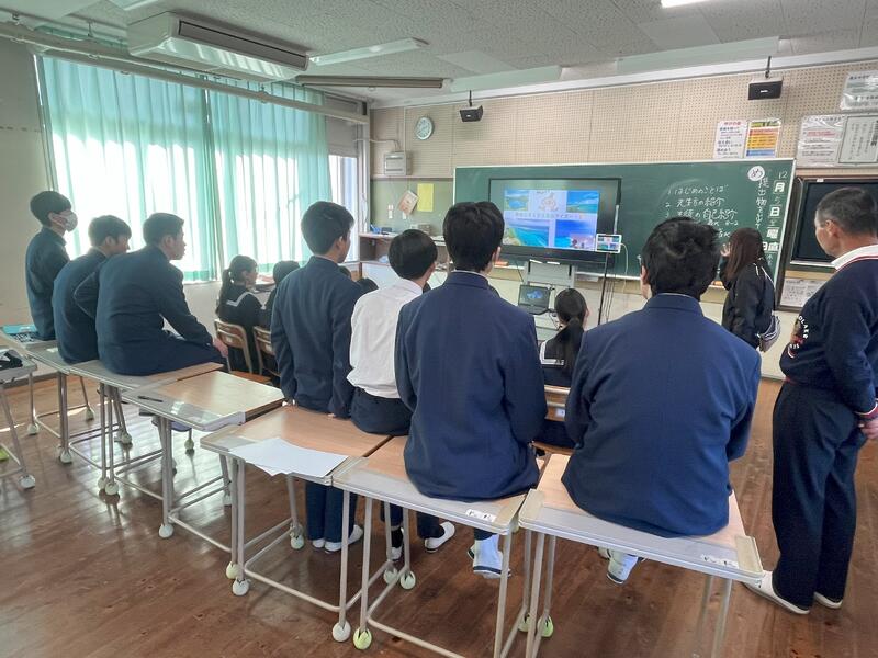 さて、先週の5日(金)本校2年生と宮古島市立伊良部島中学校との遠隔交流を実施しました。本校は修学旅行で宮古島を訪れ、伊良部島中学校との交流を続けています。生徒たちにとって初めての遠隔交流。緊張しながらも自己紹介や地元クイズなど、短い時間でしたが楽しく交流できたようです。1月には実際に伊良部島中学校を訪れ対面します。楽しみですね。