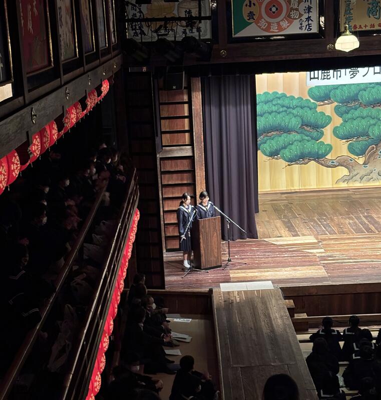 さて、本日午前中に山鹿市内すべての中学校2年生が八千代座に集まり、夢プロジェクト講演会が開催されました。お忙し中、ご来賓として早田市長様をはじめ、市議会議員の皆様にもご参加いただき、感謝致します。