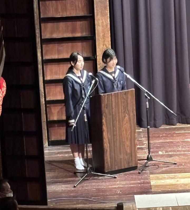 各中学校の代表が教育委員会と打合せを重ね行った講演会。緊張しながらも立派に役割を果たしました。本校生徒も進行役として頑張る姿がありました。二年生の皆さん、今日の話から学び得たことを今後の人生に生かしてください。