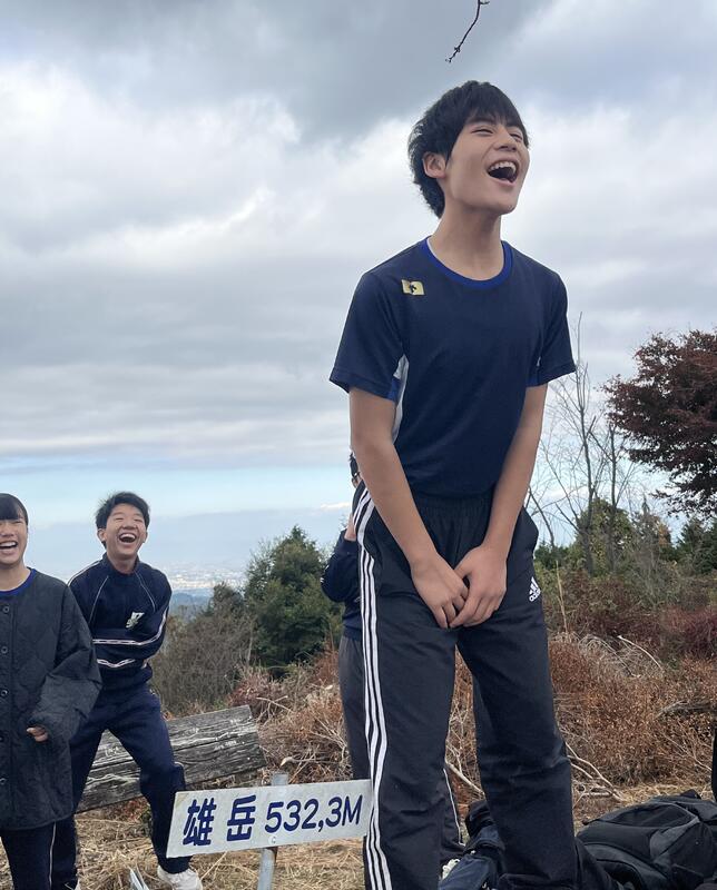 昨日登山を行った2、3年生ですが、今回は2年生の様子を紹介します。男岳の頂上では、一人一人が決意の言葉を述べました。笑顔の写真が多く、辛さは感じていない様子でした。生徒の感想には、「最初はきついだろうと思っていたけど、みんなと一緒に登ったからか、辛くはなかった!」「とても楽しく登れました」とありました。思い出に残る登山になったようです。鹿北中学校の新しいリーダ-として活躍してくれることを期待します!
