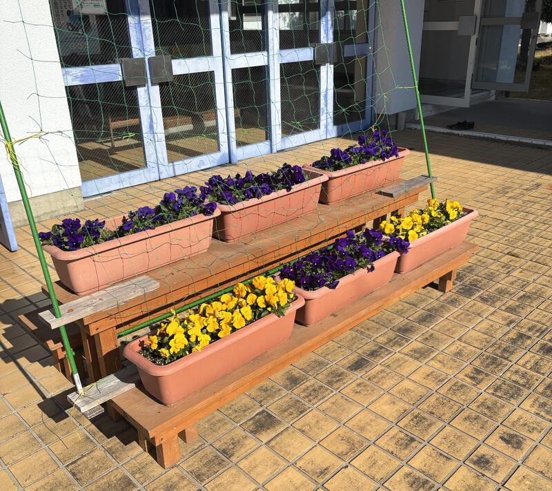 生徒の皆さん、明日は元気に登校してきてください。生徒昇降口の花も皆さんたちを待っているかのように咲いています。2026年の目標を明確にしましょう。
