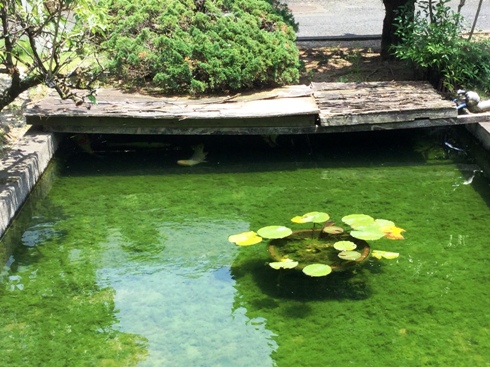 玄関前の池の鯉もさすがに暑いのか、みんな日陰に入ってしまいました。「人間といっしょだなあ」と思いながら、「ガンバレ!」と声をかけています。