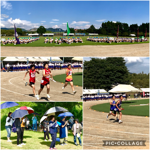 9月10日(火)、午前8時20分より、山鹿市中体連陸上競技大会が市カルチャースポーツセンター多目的グラウンドにて開催されました。厳しい残暑の中、各中学校の選手、競技役員の生徒、応援生徒が、汗びっしょりになりながら、精一杯頑張る姿がたくさん見られた大会となりました。