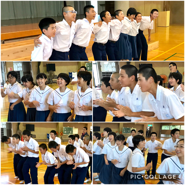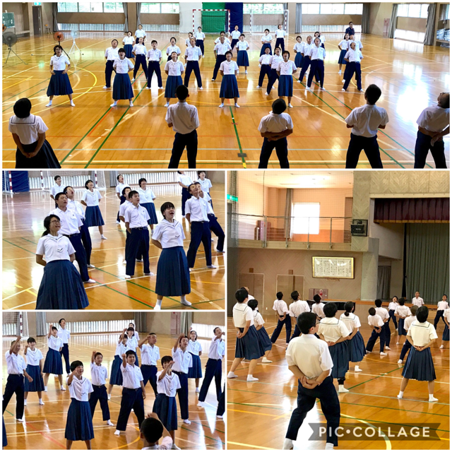 昼休み、全校生徒が体育館に集まり応援練習を行いました。体育館中に響く応援の声、明日は、グラウンドで響かせ続けてくれることを期待します。