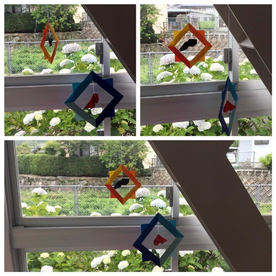 6月22日(木)、1階サポートルーム前廊下に折り紙で作った金魚ばちと金魚が飾ってあります。風でゆらゆらと泳いでいて、とても涼しそうです。窓の外にはあじさいの花が咲いていて、廊下を通るたびにさわやかさを届けてくれます。ちょっとしたことですが、ちょっとしたことで人の心を豊かにしてくれる心遣いに感謝です。