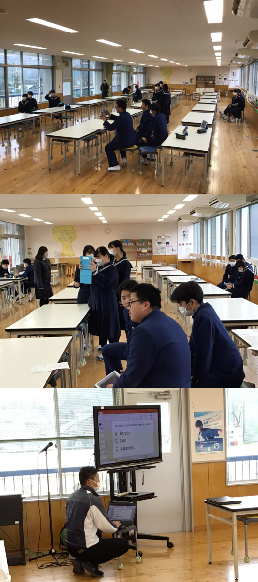 2月14日(水)の1校時。先週に期末テストを終えた3年生は英語の学習でした。実は明日、3年間の英語の学習の仕上げとして、オーストラリアのモナロ高校の生徒さんとオンライン交流をします。自分たちの英語がどれくらい通じるのかドキドキしているかと思いきや…。とても楽しそうに最後の準備をしていました。明日どんな交流会になるのか教師の方がドキドキです。
