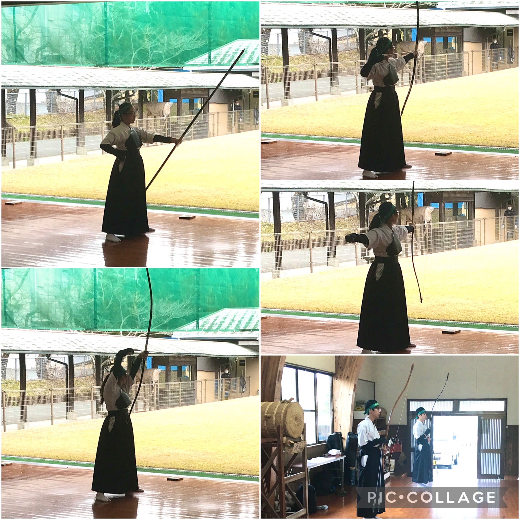 弓道場は、底冷えのする寒さが足の裏から伝わってきます。そんな寒さの中ですが、凜と張り詰めた緊張感を楽しむかのように、3名の生徒の落ち着いた所作がとても優雅に見えました。