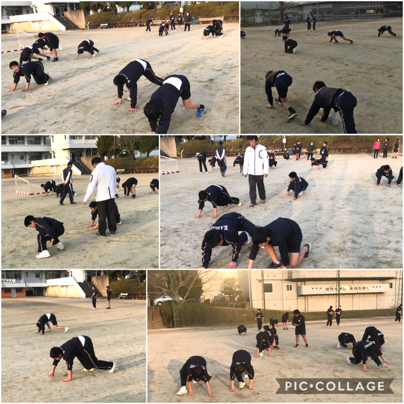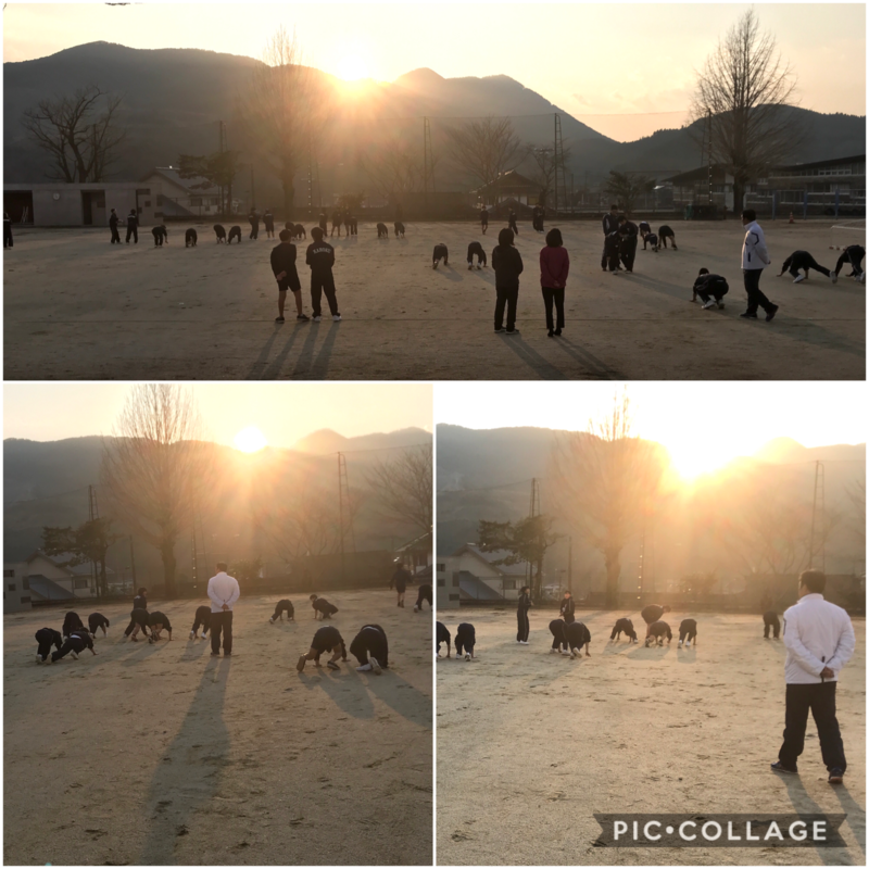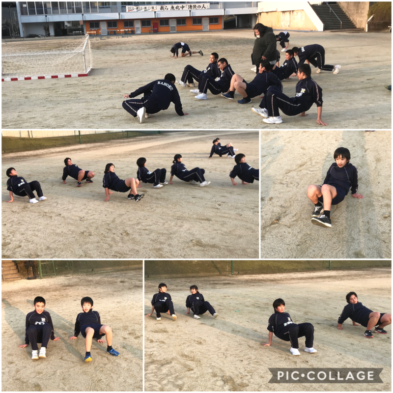 2月3日(月)の放課後、グラウンドからは、小中学生の元気の良い声が聞こえてきます。小学6年生が参加して、部活動のアップを各部合同で行っています。中学生が積極的に小学生と関わる姿が見られ、小学生も安心して活動に取り組んでいます。