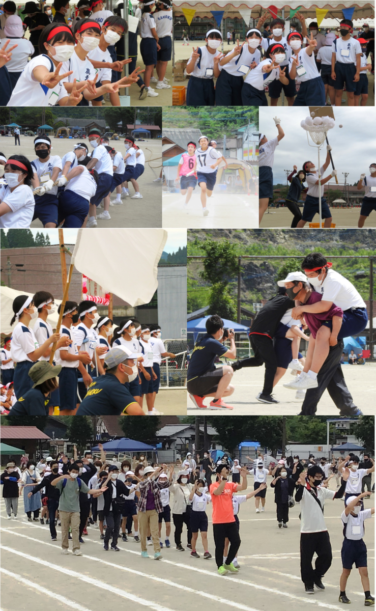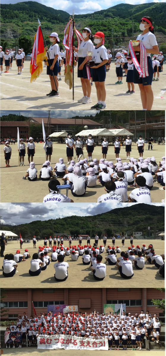 5月21日(土)。第四回鹿北小中学校大運動会でした。今年の運動会テーマは「挑む つながる 支え合う」です。「自分の苦手なことや課題に失敗を恐れず勇気を出してチャレンジしたい」「自分のクラスや団の仲間、学年を越えてつながりたい。ふるさと鹿北の方々とつながりたい」「ひとりではできないこともみんなで支え合いながら取り組んで運動会を成功させたい」という思いが込められています。マスク着用や応援席の工夫など、感染対策をしながらの実施でした。そのような中でも、歯を食いしばって最後まで走る姿、笑顔いっぱいで踊る姿、指先までピシッと決めた規律ある姿、一緒に協力しながら競技する親子の姿など、会場のあちこちにたくさんの輝きのある大会でした。みんなで踊った鹿北音頭や、三年ぶりのお弁当を嬉しそうにほおばる姿なども印象的でした。保護者の皆様、地域の皆様、たくさんの応援ありがとうございました。