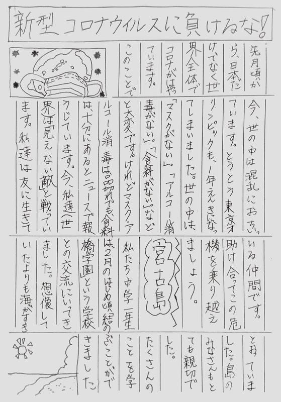 「下中新聞」は、新中学2年女子生徒が、小学生の頃から、自分が住む地区の方々を笑顔にしたいとの思いで作り始めた手作り新聞です。