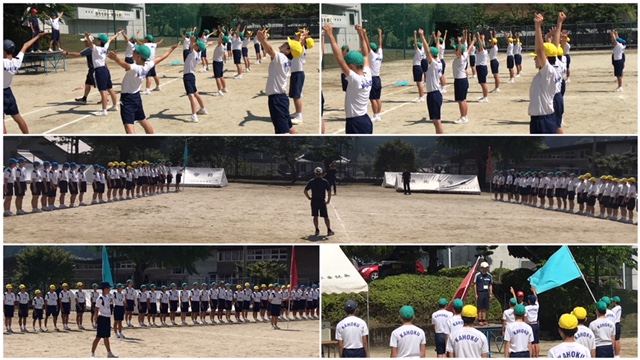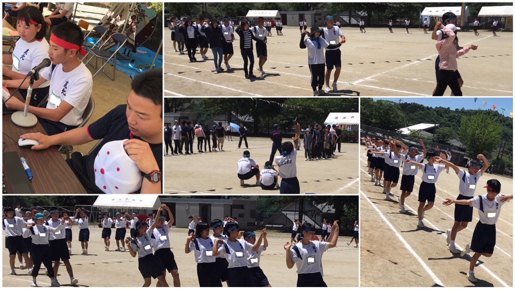 5月15日(火)午後、体育大会全体練習。生徒会、各団団長、全校生徒、とにかく元気です。気合い入ってます。全力です。
