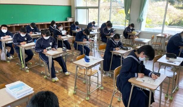 4月12日(火)、1~3校時は学力検査(国語、理科、英語)でした。どの学年も、どの生徒も、真剣に問題に向き合っていました。1年→2年→3年と順に見て回ったのですが、3年生のテストを受ける様子には風格のようなものを感じました。