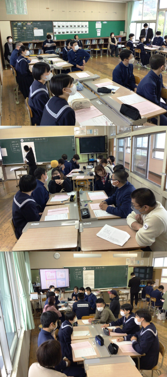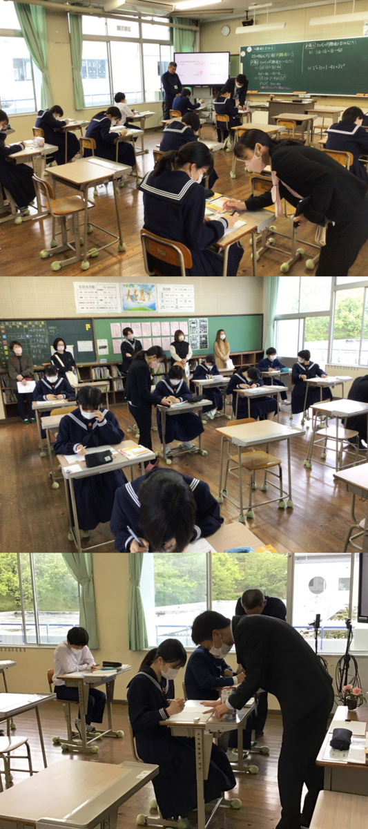 4月15日(土)の2校時は授業参観でした。3年生は学活。後半は保護者にも授業に入っていただいて参加体験型の授業が行われていました。2年生は数学。担任でもある教科担任に学年主任と副担任も加わった3人体制で多項式の学習が行われていました。1年生は体育。体を動かしながら仲間づくりをする活動が行われていました。生徒たちの様子におもわず笑顔があふれる場面もあり、生徒たちが学習する姿や、教師のかかわりの様子を間近で見ていただくことの大切さを改めて感じた時間にもなりました。たくさんのご参加、ありがとうございました。