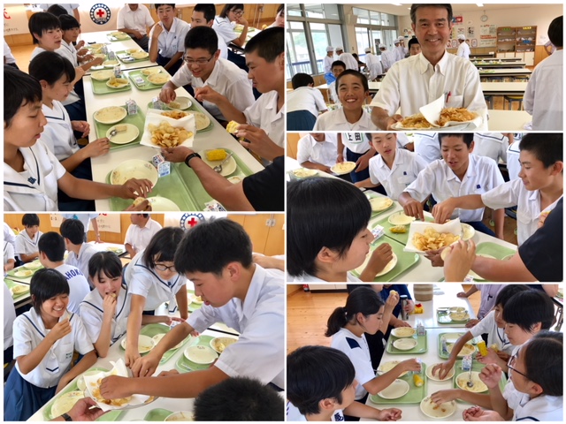 6月7日(木)あやすぎ学級の生徒が調理実習で作ったポテトチップスを校長室に持ってきてくれました。二種類の味付けをしているとのこと、味の違いを楽しみながらいただきました。そして、給食の時間、あやすぎ学級作のポテトチップスは全校生徒に配られました。みんなで顔を寄せ合い、つまみながら食べるポテトチップス。人と人の距離を近づけてくれる不思議な力があります。