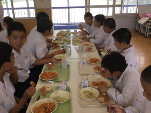 6月15日(水)、第2回の交流給食を行いました。今回は、小学校のランチルームで、小学1年生と中学1年生が、中学校のランチルームで、小学5年生と中学2年生が一緒に給食を食べました。とても和やかな雰囲気で楽しい給食の時間となりました。また、中学生がとても頼もしく見えました。