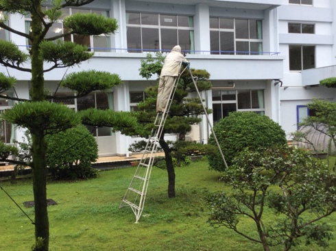 毎日、お二人の用務員さんに学校の教育環境を整えていただいています。草刈り、庭木の剪定、花壇整備、グリーンカーテン設置、池の清掃、修理・・・等たくさんのことを行っていただいています。学校は、さまざまな方々の支えがあって成り立っていることをあらためて実感します。これからの季節、気温が上昇しとても暑くなります。そんな中でも、日々、生徒が過ごしやすい環境を整えてくださる用務員さんに心より感謝いたします。本当にありがとうございます。