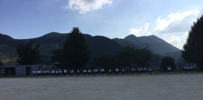 山鹿市中体連夏季大会が終了しましたが、本校生徒は、すでに9月に行われる山鹿市中体連陸上競技大会に向けて新たなスタートを切りました。部活動を引退した3年生も含めて、全ての生徒が放課後の陸上練習に参加しています。暑い中、お互いに声を掛け合いながら練習に取り組んでいます。この日々の努力、自分とのたたかいこそが、自分の心も体も強くしていきます。