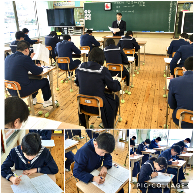 1月8日(火)今日から2日間、課題テストが実施されます。今日は2教科で明日は3教科、問題は県版テストです。各学年とも集中して取り組んでいて、シーンとした教室の中で聞こえてくるのは、エアコンの稼働する音、ペンを走らせる音、咳払い、担当の先生が動いたときに床がミシッと鳴る音ぐらいです。問題と向き合う生徒の表情は、普段見せる表情とは違って真剣そのものです。