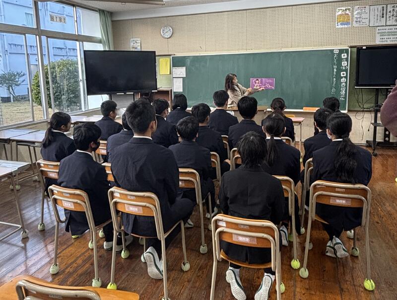 各中学校の代表が教育委員会と打合せを重ね行った講演会。緊張しながらも立派に役割を果たしました。本校生徒も進行役として頑張る姿がありました。二年生の皆さん、今日の話から学び得たことを今後の人生に生かしてください。
