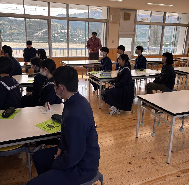 講師は前山鹿市長の中嶋憲正氏。「清浦奎吾伯の生涯に学ぶ」と題し、熱く中学生に向けてメッセージをいただきました。目標を持つ大切さや人と人との出会いの中で学び育つことなど、今後に役立つお話しでした。