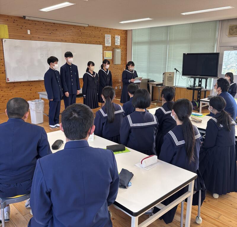 これまで生徒会の中心となり引っ張ってくれた会長をはじめ、旧役員に皆さん。今の鹿北中学校があるのは、全校生徒をまとめた皆さんたちのおかげです。ありがとうございました。新役員は、皆さんの意志を受け継ぐとともに、新たなことにチャレンジしていきます。卒業まで時間がありますので、アドバイスをお願いします。