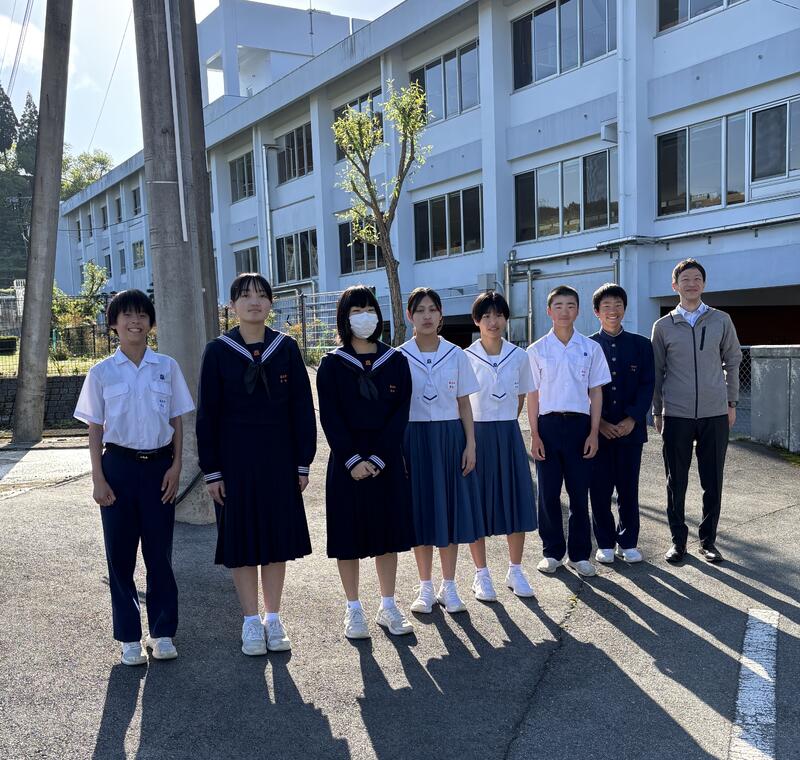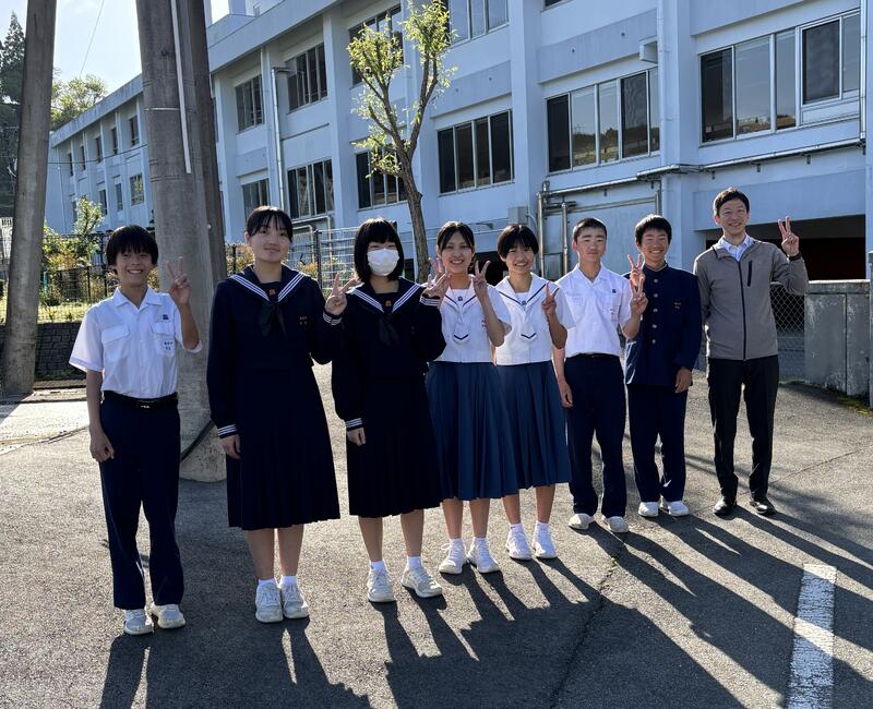 3月24日(月)。日頃からお世話になっている地域の方々に感謝の思いを伝える「鹿北Thanksプロジェクト」を実施しました。学校で出発式を行い、生徒たちは班に分かれて地域の事業所などへ向かいました。到着して代表生徒がお礼の言葉を述べながらお花を渡すと、みなさん温かい笑顔で受け取っていただきました。皆様のおかげで、本年度も生徒たちは大きく成長することができました。ありがとうございました。新年度もどうぞよろしくお願いいたします。