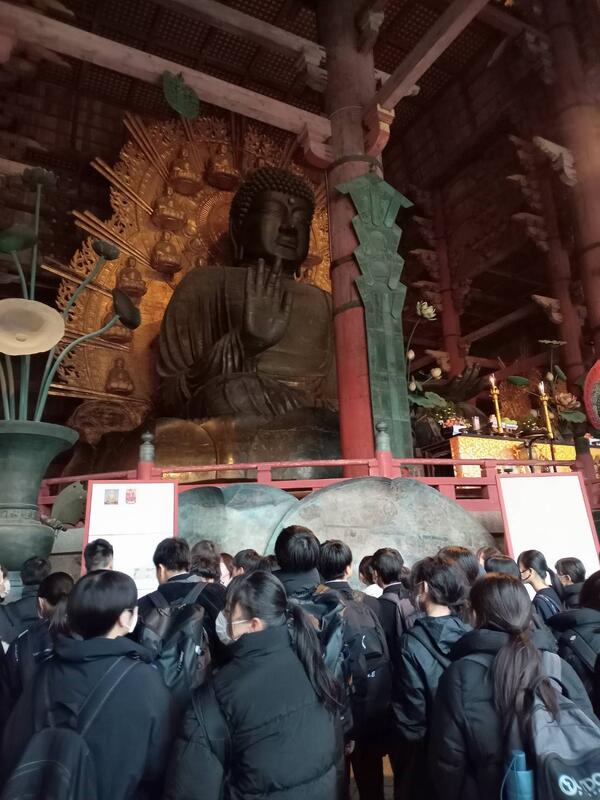 その後は奈良公園・東大寺を見学しました。大仏の右手の中指がなぜ少し前に出ているのか、積極的に質問した人もいました。なぜだかご存じですか?