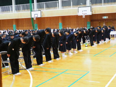 4月9日、第17回となる入学式が行われました。まだぶかぶかの制服に身を包み、緊張と期待に胸を膨らませた143名の新入生が、新しく荒尾海陽中学校の仲間となりました。これからの3年間で、大きく成長してくれることと思います。保護者の皆様には多くの方の参加をいただき、ありがとうございました。